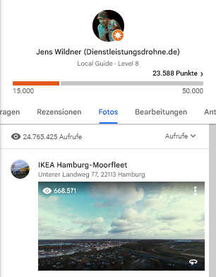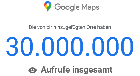 Bei Google Streetview sind u.a. 360°-Panoramen besonders erfolgreich, da sie sehr gern und sehr oft aufgerufen und angeschaut werden.Die nebenstehende Ehrung habe ich von Google erhalten.